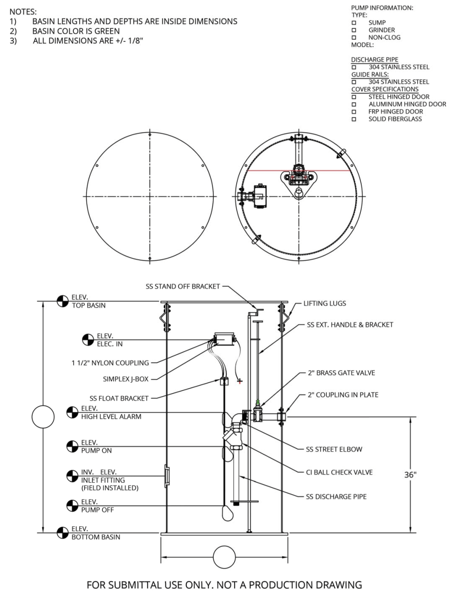 • Includes lift out system, integrated check valve, stainless steel bracket, guide and lift cable