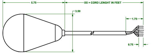 Avocado Light Duty Float Switch - 30 Foot - Normally Open/Normally Closed - Double Pole Double Throw - DPDT - Narrow Angle - Skived Cord Ends
