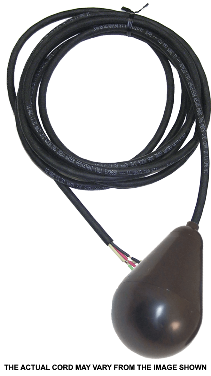 This float has skived ends, where the insulated wire leads inside the cable are intended to be wired into other system components inside a junction box.
