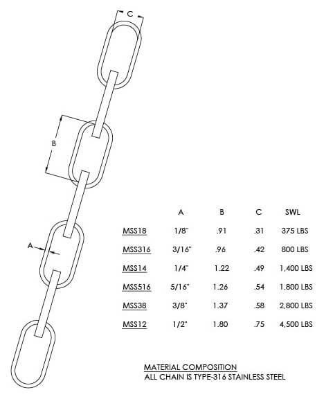 Chain & Shackle Kit - Stainless Steel - 0.25 (1/4) Inch - 1,000 lbs SWL - Flo Pro