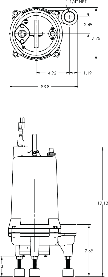 Easy to install, rugged, heavy duty, Cast-Iron, 1 HP grinder pump that have a 1-1/4” vertical discharge and grinds sewage into a slurry and will help reduce clogging found in various wastewater applications.
