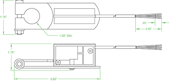Damper Arm Tilt Switch - 1 Inch - Non-Mercury DATS - Plenum Cord