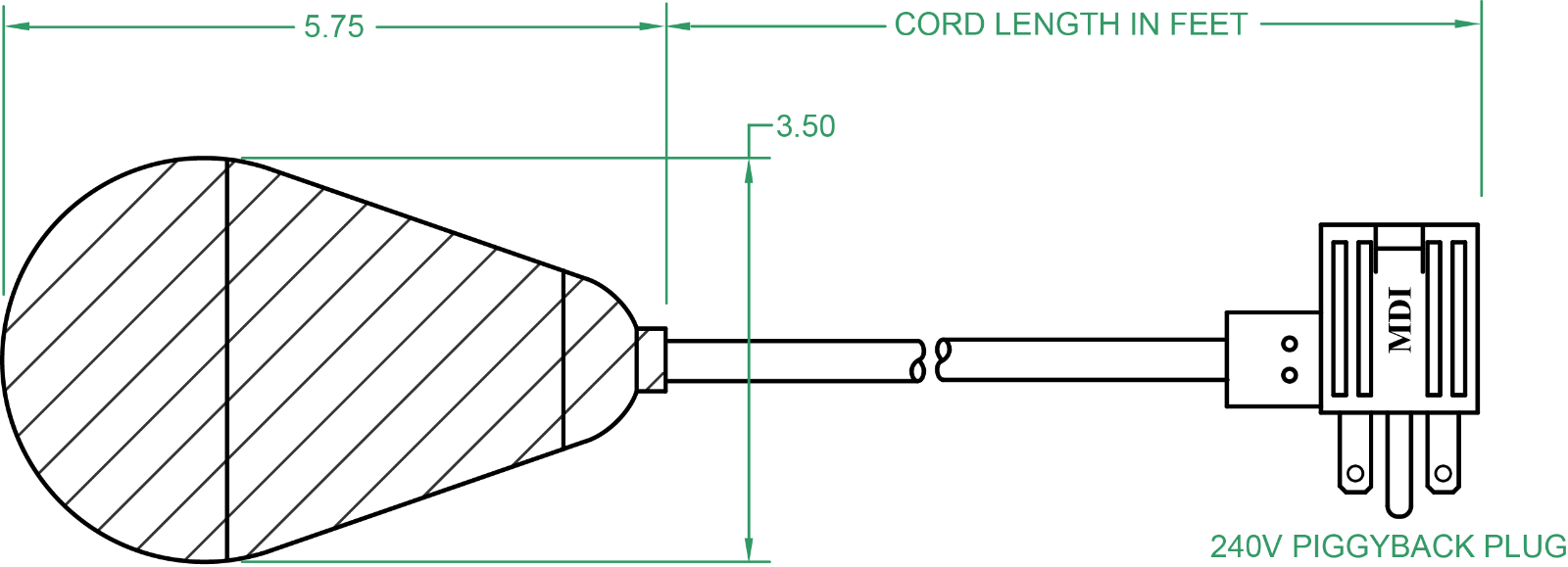 This float has a 240 VAC Piggyback Plug, where no junction boxes or complicated electrical connections are needed. Plug the switch into a standard 240 VAC outlet, and plug your pump into the piggyback plug.