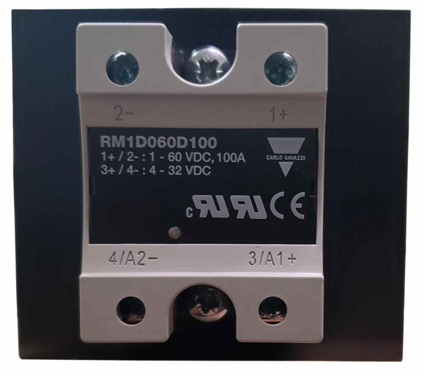 The RM1D060D100 H expands the range of DC solid state switching solutions up to 100 A for supply voltages up to 60 VDC. This new range is suitable for mounting on a heatsink or for panel mounting (Special Ordered). The switching of the RM1D060D100 H is controlled by a DC voltage in the range of 4 to 32 V. An LED indicates control voltage presence on the SSR.