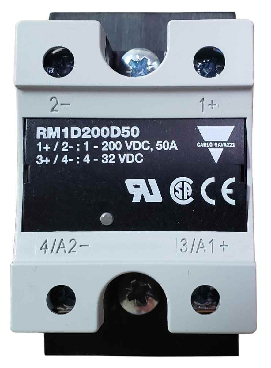 The RM1D200D50 H expands the range of DC solid state switching solutions up to 50 A for supply voltages up to 200 VDC. This new range is suitable for mounting on a heatsink or for panel mounting (Special Ordered). The switching of the RM1D200D50 H is controlled by a DC voltage in the range of 4.5 to 32 V. An LED indicates control voltage presence on the SSR.