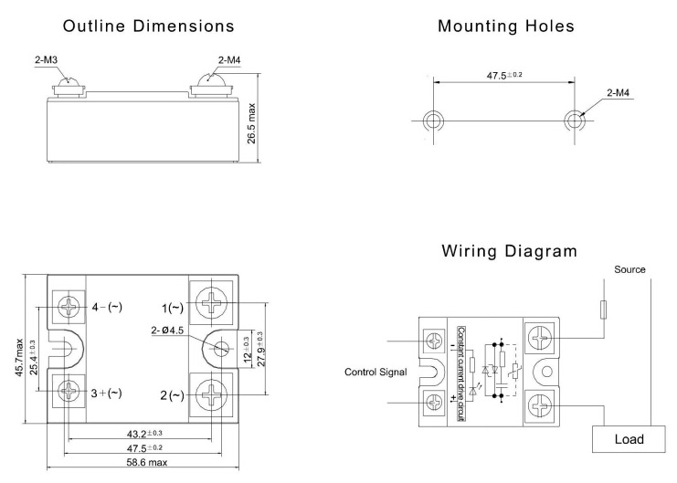 - Load Voltage Range 48 - 530 VAC