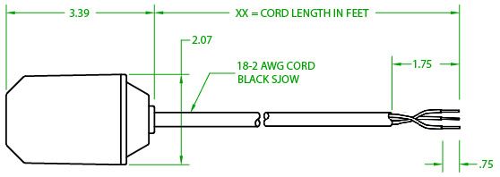 This float has skived ends, where the insulated wire leads inside the cable are intended to be wired into other system components inside a junction box.