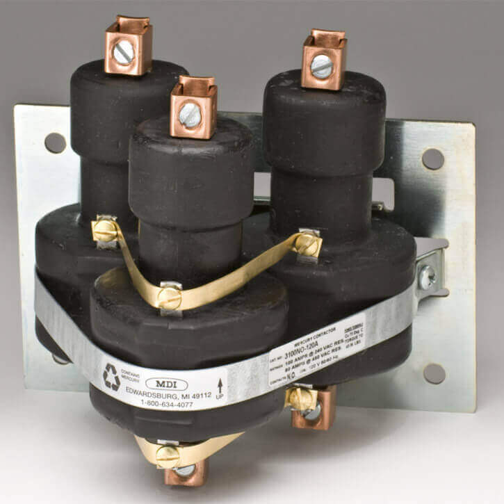 The 100-AMP high voltage normally open contactors are designed and manufactured to high quality specifications and the contactors are commonly used in various heating, lighting, and many other industrial applications including high voltage ultraviolet type loads. The contacts are encased in hermetically sealed stainless steel tubes to provide reliable switching for millions of operations. MDI has manufactured this contactor since 1975. It is available in the single, two, three & four pole models.