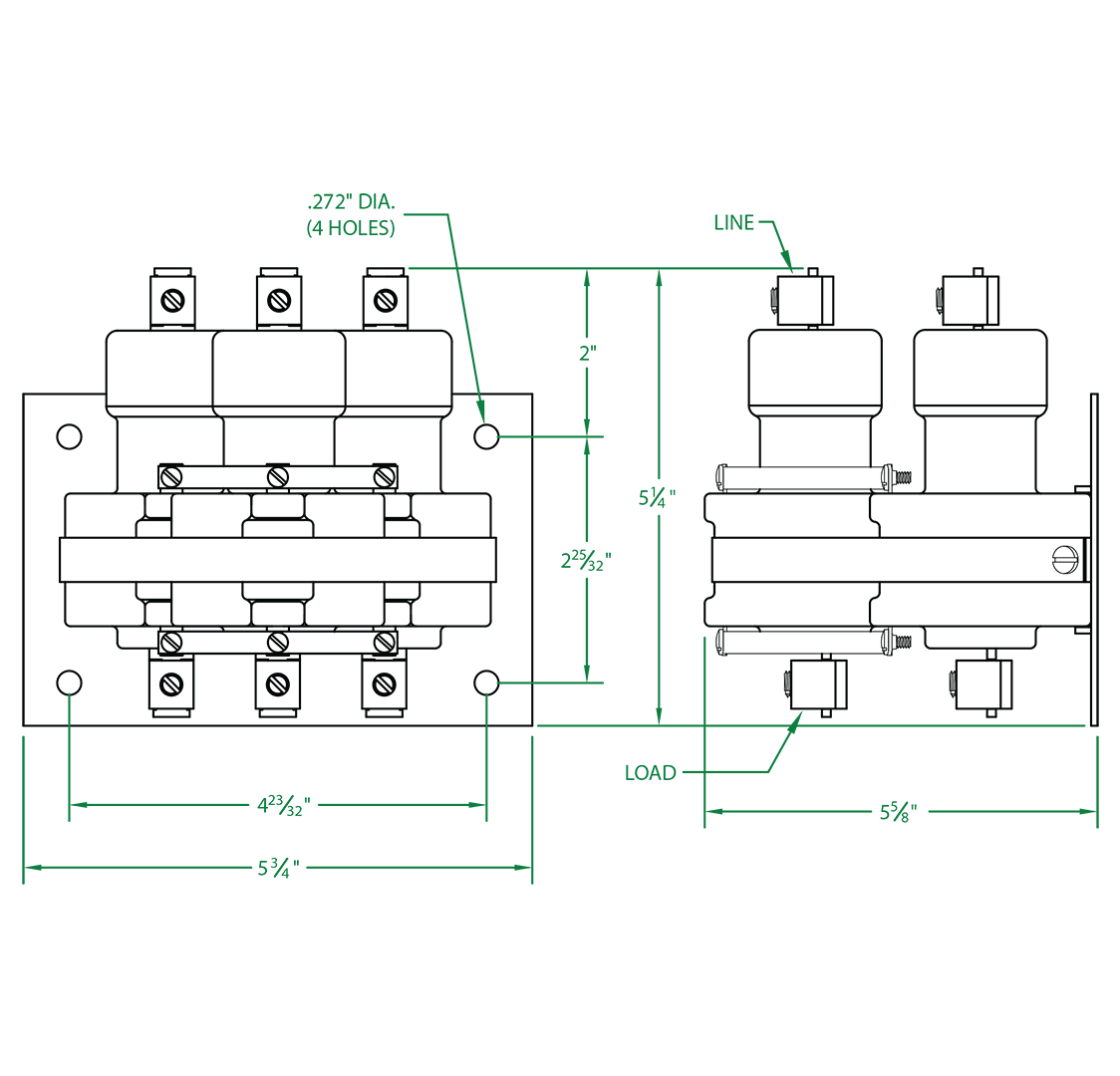 Available in all standard coil voltages, in single, two and three pole arrangements. Other coil voltages available upon request.