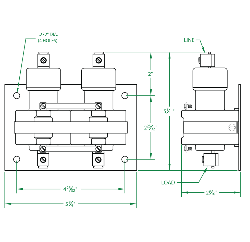 The coils are wound on compact nylon bobbins and molded onto the metal tube to provide minimum power loss. This allows for low coil power required to actuate the contactor. This also enables the units to handle high loads with minimum derating due to higher ambient temperatures.