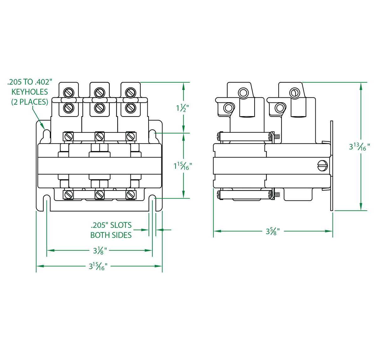 Available in all standard coil voltages, in single, two and three pole arrangements. Other coil voltages available upon request.
