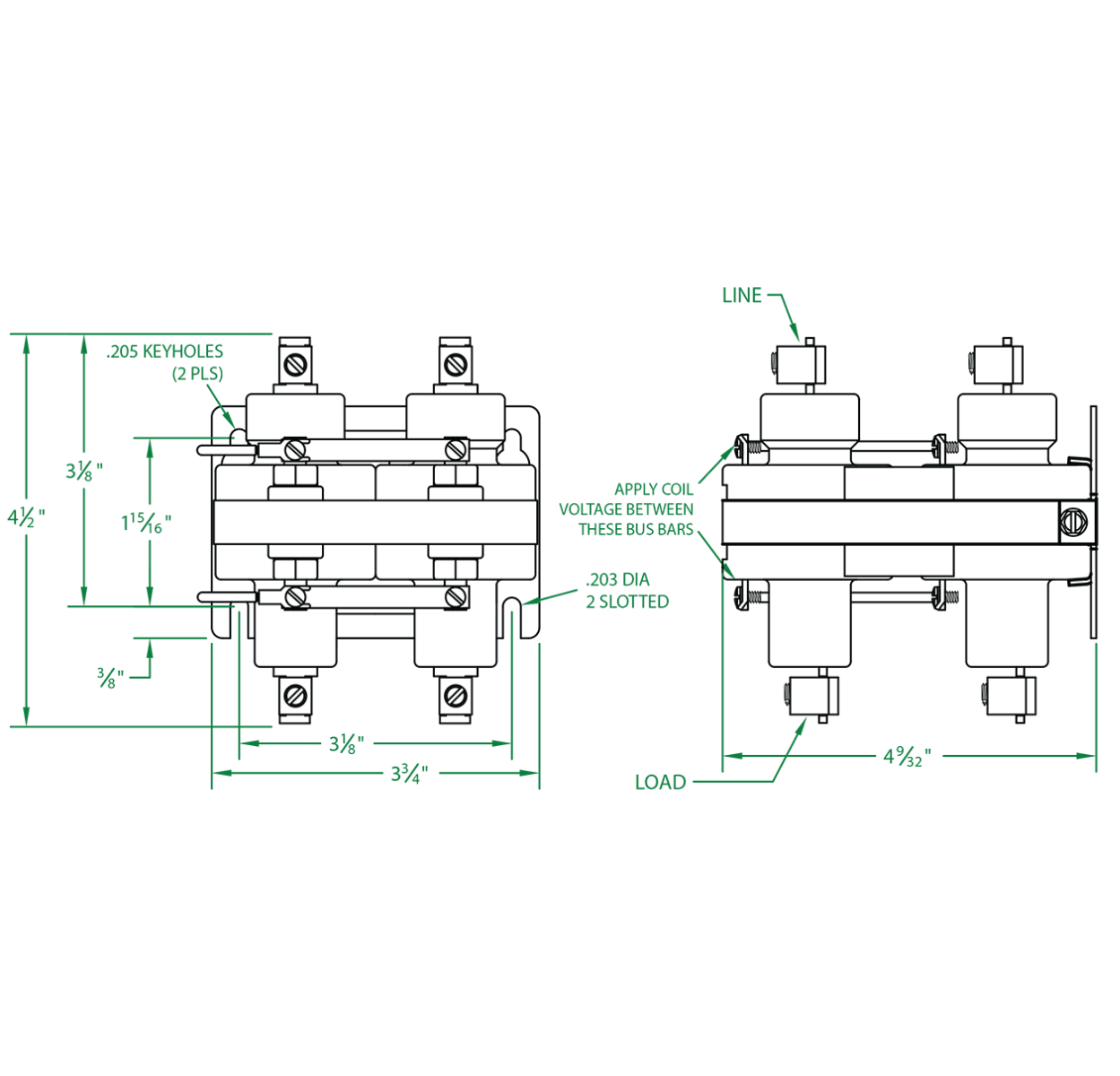 Available in all standard coil voltages, in single, two and three pole arrangements. Other coil voltages available upon request.