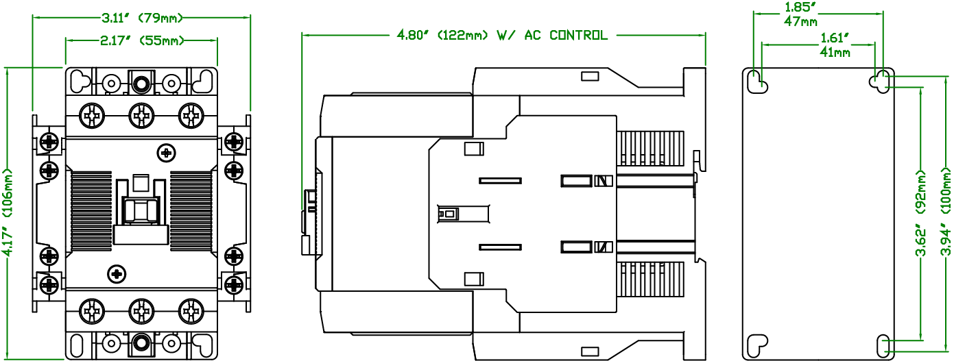 MIDI Relays (IEC Contactors) - 100 AMPS Resistive Relay - 3 Pole - AC Control