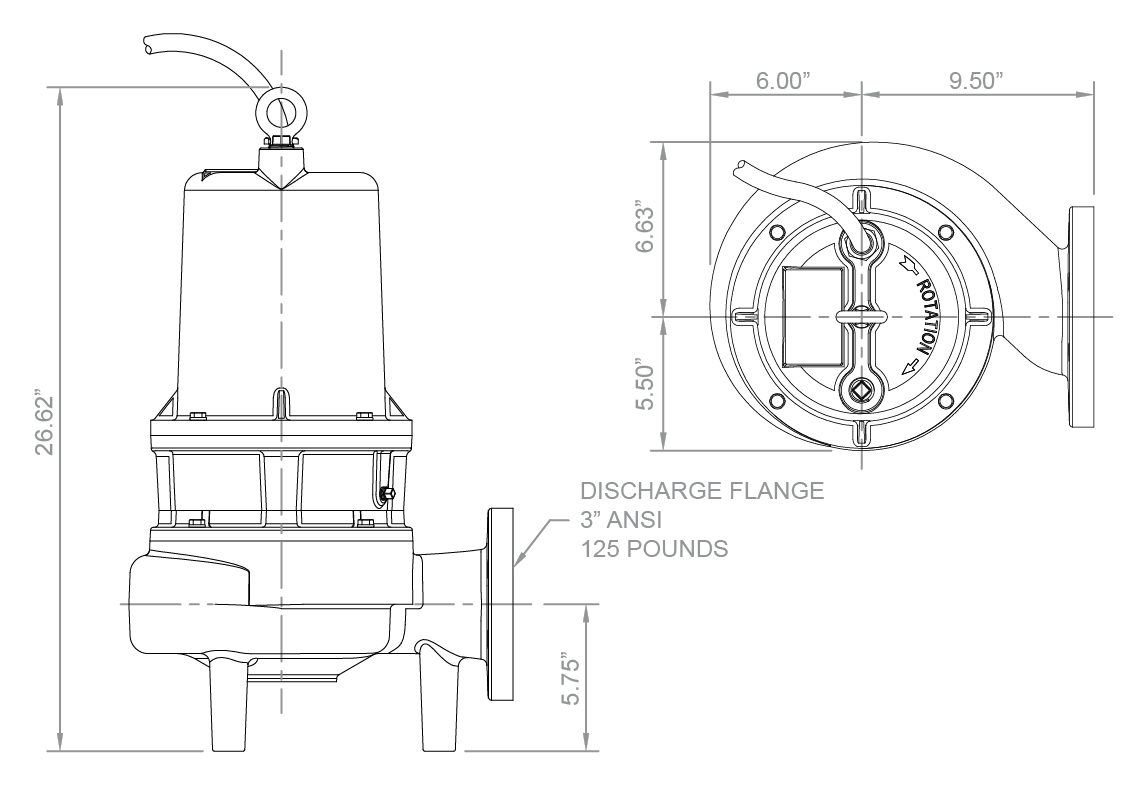 Non-Clog - 3" Discharge - 2 to 5 HP - 2.50" Solids