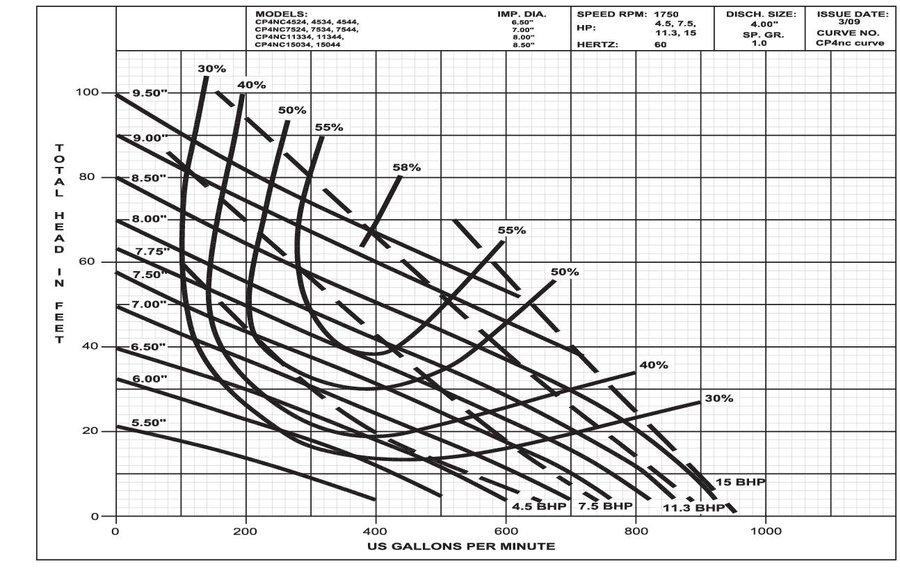 Non-Clog - 4" Discharge - 4.5 to 15 HP - 3" Solids