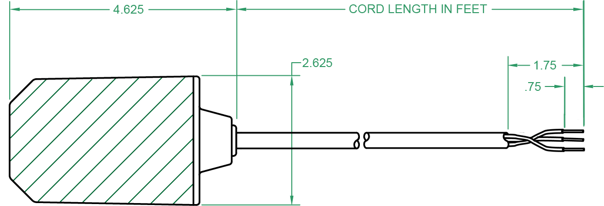 This float has skived ends, where the insulated wire leads inside the cable are intended to be wired into other system components inside a junction box.