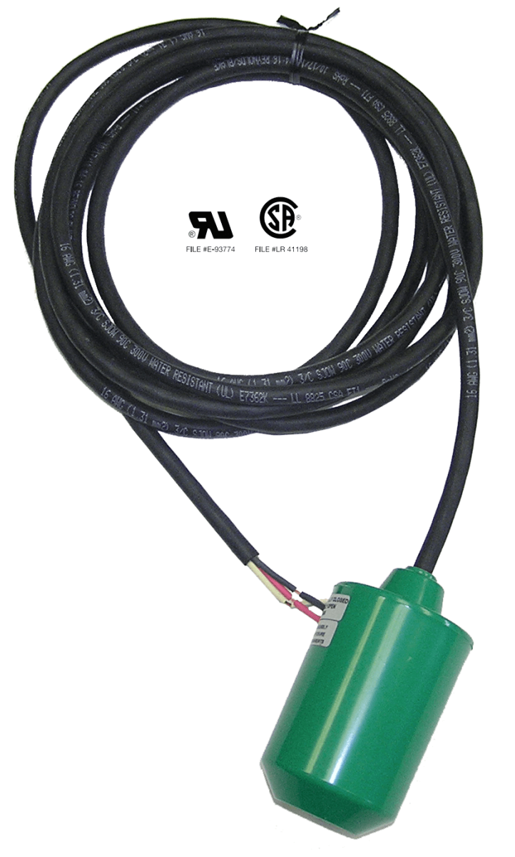 The liquid level control floats are manufactured with mechanical or mercury switches. The float material is High Impact Polystyrene for normal alarm, sump pump or water applications, For sewage, 1 or 2 H.P. or high temperature, 86°C (186°F) requirements Acrylonitrile Butadiene Styrene, (ABS) float material is provided.