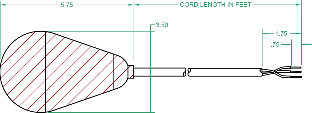This float has skived ends, where the insulated wire leads inside the cable are intended to be wired into other system components inside a junction box.