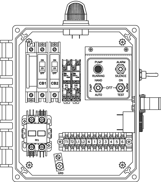 - Pump Hand-Off-Auto Switch with Pump Running Light