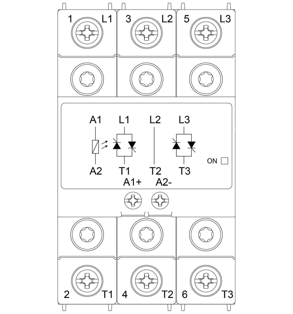 With this 2-pole switch ON occurs at the voltage zero cross and switch OFF occurs at the current zero cross. Apart from resistive and slightly inductive loads, the SSR is certified for motor switching with associated motor ratings. Varistors are integrated for output over voltage protection. A green LED gives indication of control voltage presence. Fan operation is controlled for the versions which have an integrated fan.