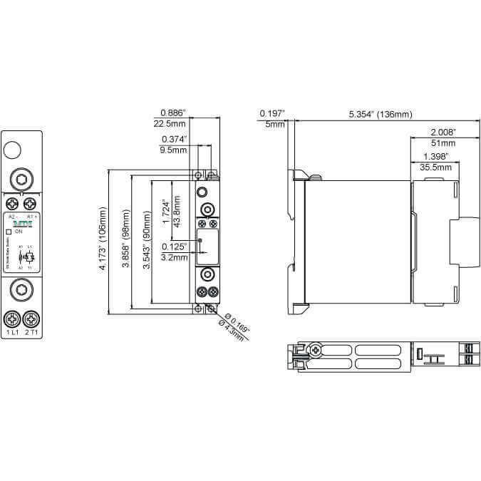 This new range of solid state contactors presents an unique opportunity to maximize efficiency in panel space and is an evolution of solid state switches. The nominal current ratings are at 104°F (40°C). The width is 0.89" (22.5mm) and is rated at 30 AAC. Power and control terminals allow for safe looping of cables.