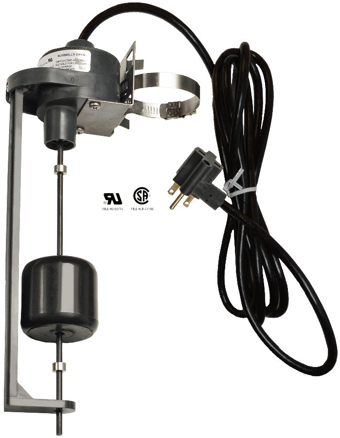 Vertical Float Switch - 10 Foot - 1 to 6 Inch Pumping Range - Normally Open - 240 VAC Piggyback Plug